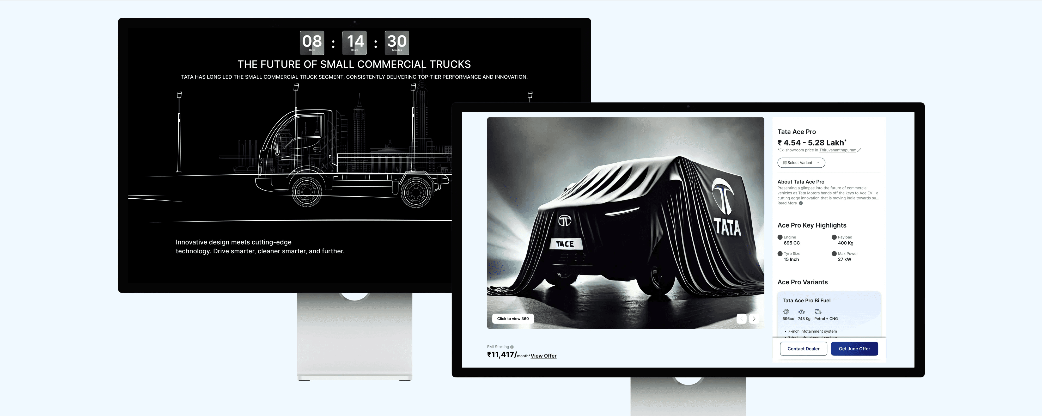 Designed the complete teaser and microsite experience for Tata’s upcoming SCV pre-launch, covering homepage takeover, UI/UX design, and interactive lead generation flows.