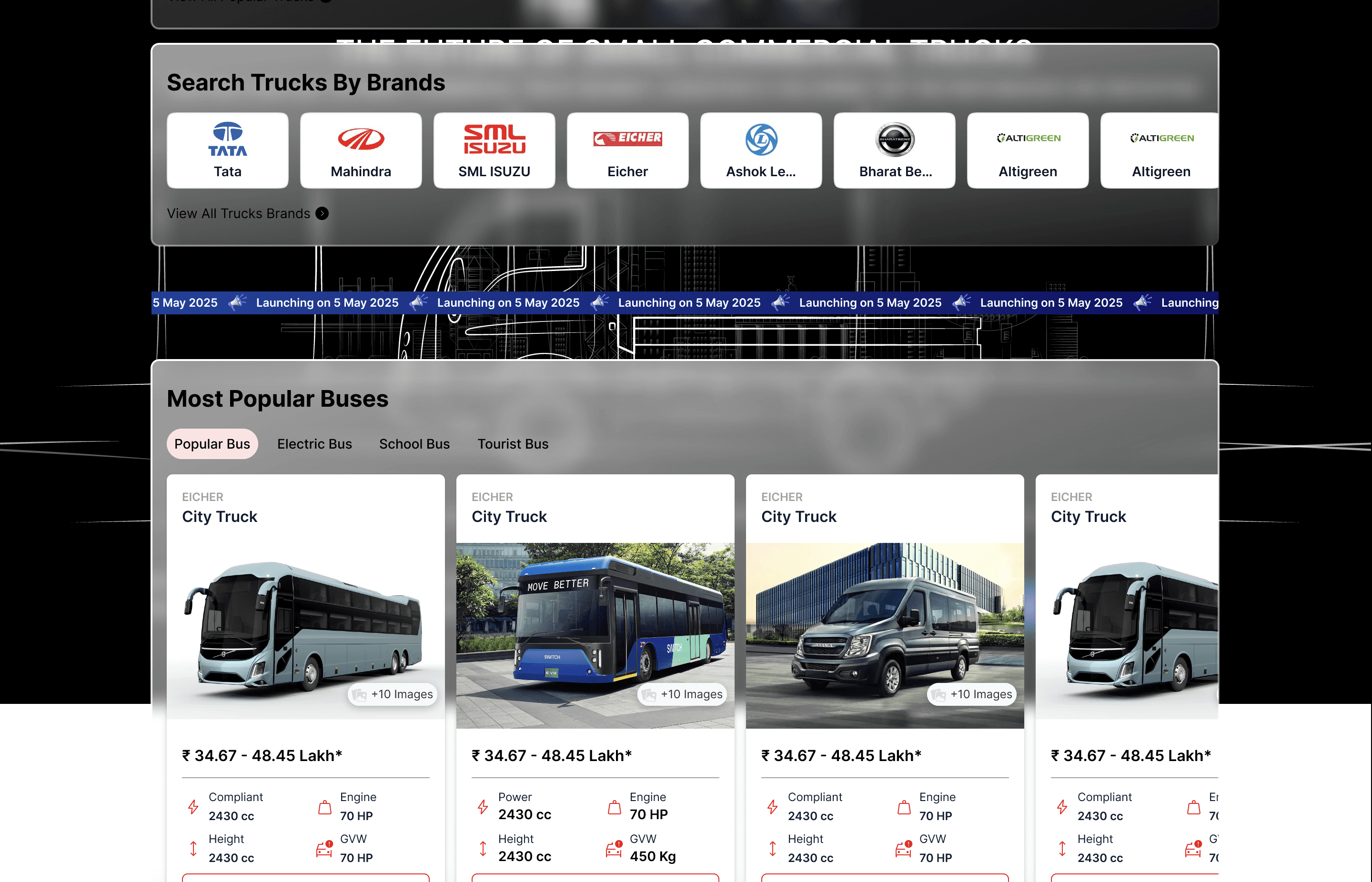 Working closely with the product team, I refined multiple layout and flow iterations to balance business priorities with user experience goals. The final design achieved a smooth, visually consistent experience that sustained attention and generated qualified leads ahead of the official reveal. This project positioned 91trucks as a strong digital partner for pre-launch campaigns and strengthened brand visibility for Tata Motors in the commercial vehicle segment.